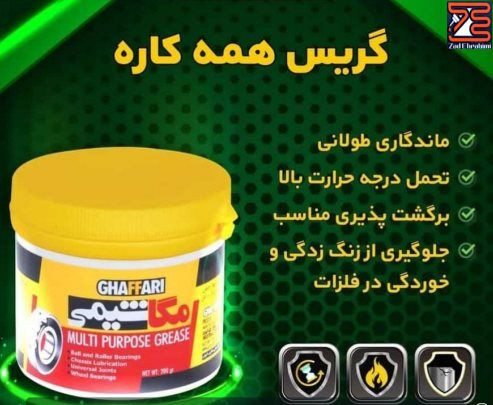گریس چند منظوره، محصولی تک جزئی، خمیری و بر پایه صابون. به عنوان روان کار در سیستم های دارای اصطکاک سبک و سنگین، با ماندگاری طولانی است که تحمل درجه حرارت بالایی را دارا می باشد. این محصول باعث جلوگیری از زنگ زدگی و خوردگی در فلزات می گردد و برگشت پذیری خوبی دارند. مناسب در جهت صنعت خودرو و ماشین آلات صنعتی و …